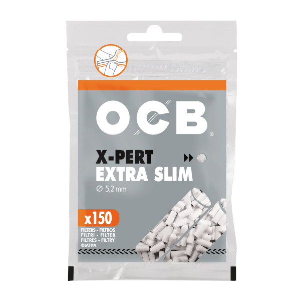 OCB – Filtros Extra Slim X-Pert (5.2 mm). Filtros para tabaco de 5.2 mm de diámetro y 15 mm de largo, hechos de acetato de celulosa. 150 filtros por bolsita.